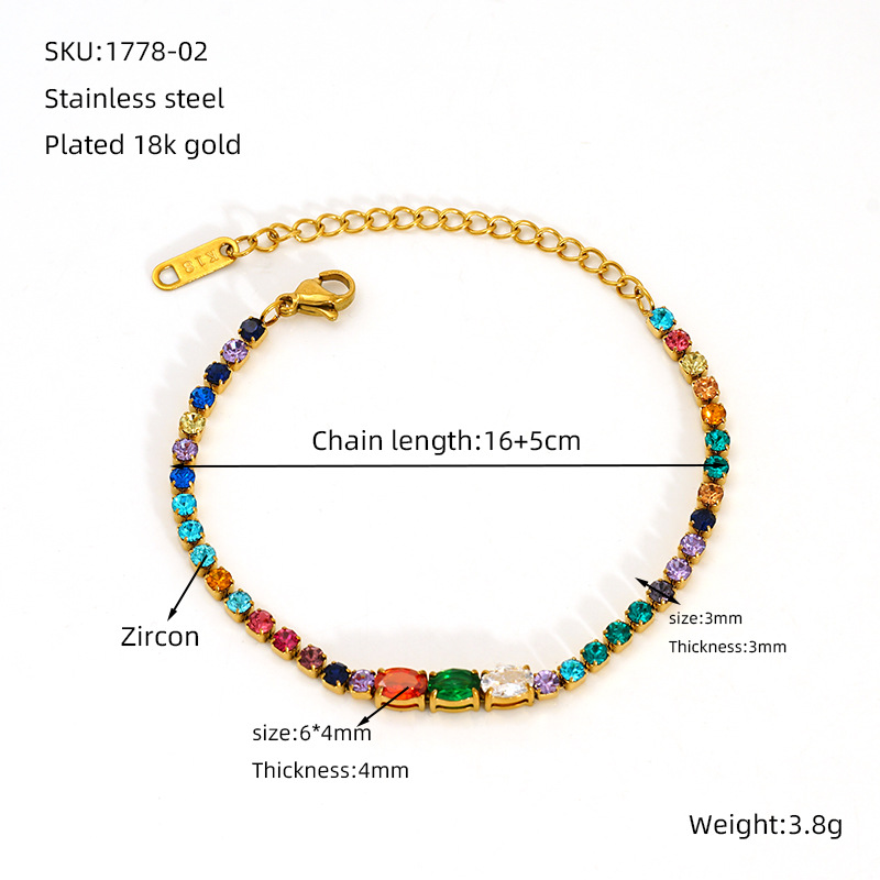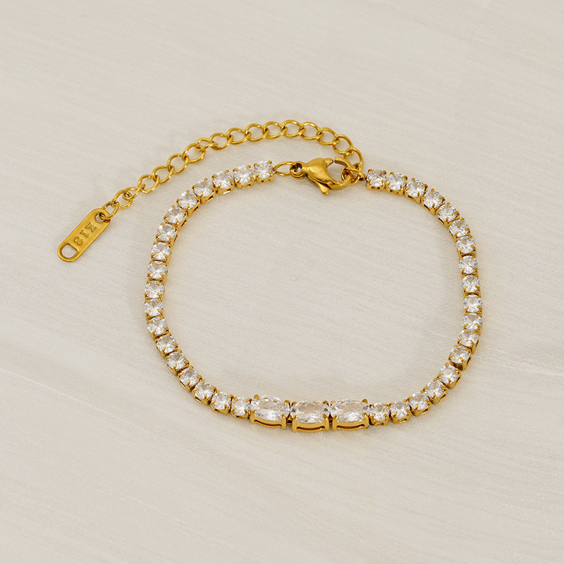 手链,304不锈钢,18K真金+白锆