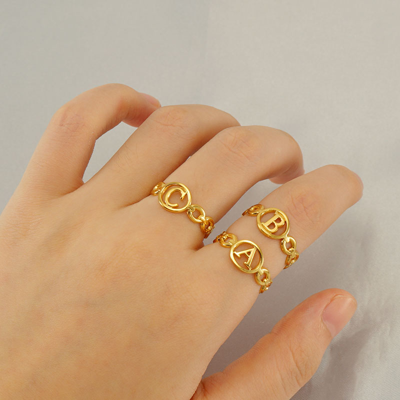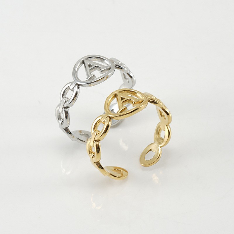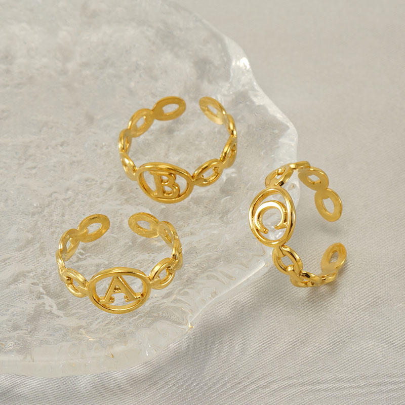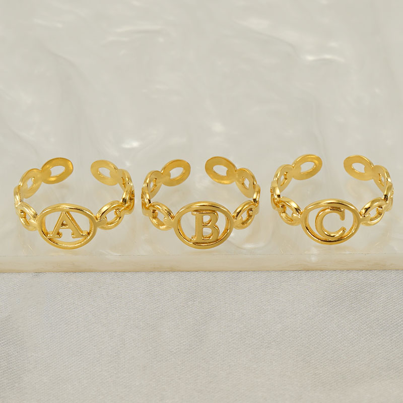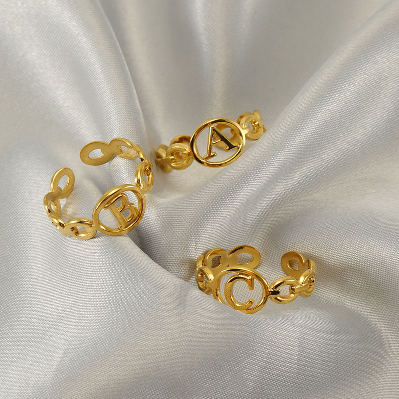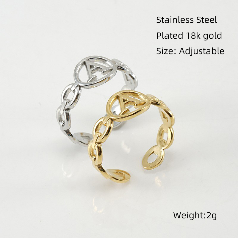 18K金不锈钢猪鼻子开口可调节26字母戒指,304不锈钢,18K真金