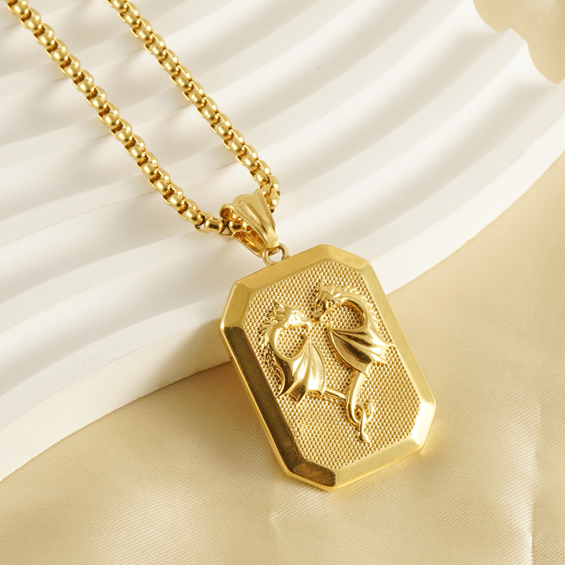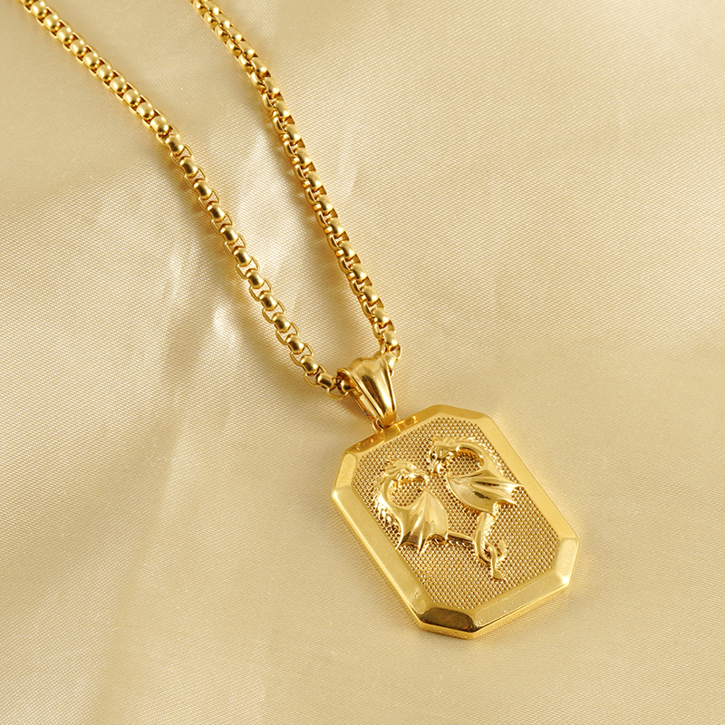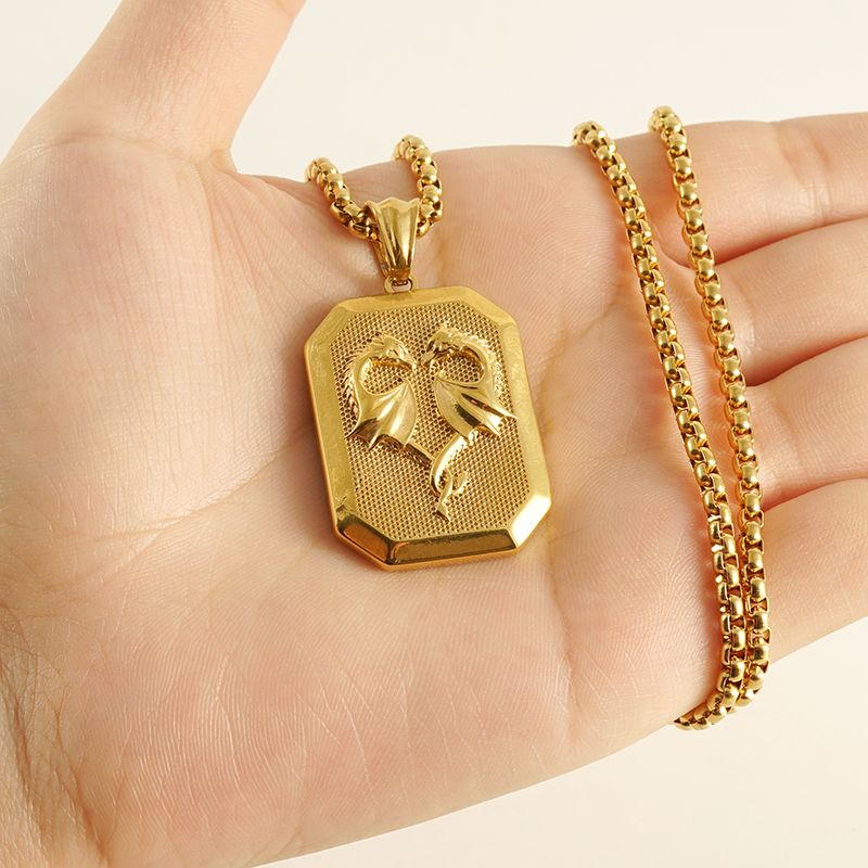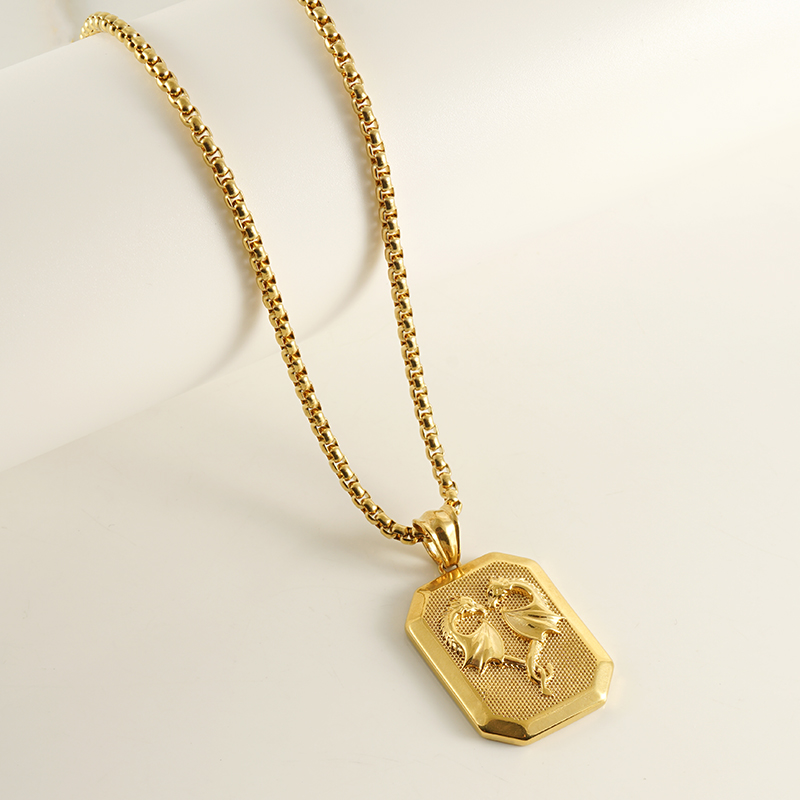 欧美时尚不锈钢方形吊坠18K个性嘻哈小马图案钛钢项链男女款,304不锈钢,18K真金 材质种类:不锈钢 | 商品编号:09562ZN856G