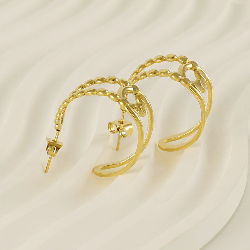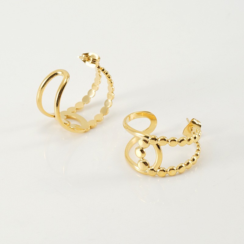 几何形镂空耳环,304不锈钢,18K真金