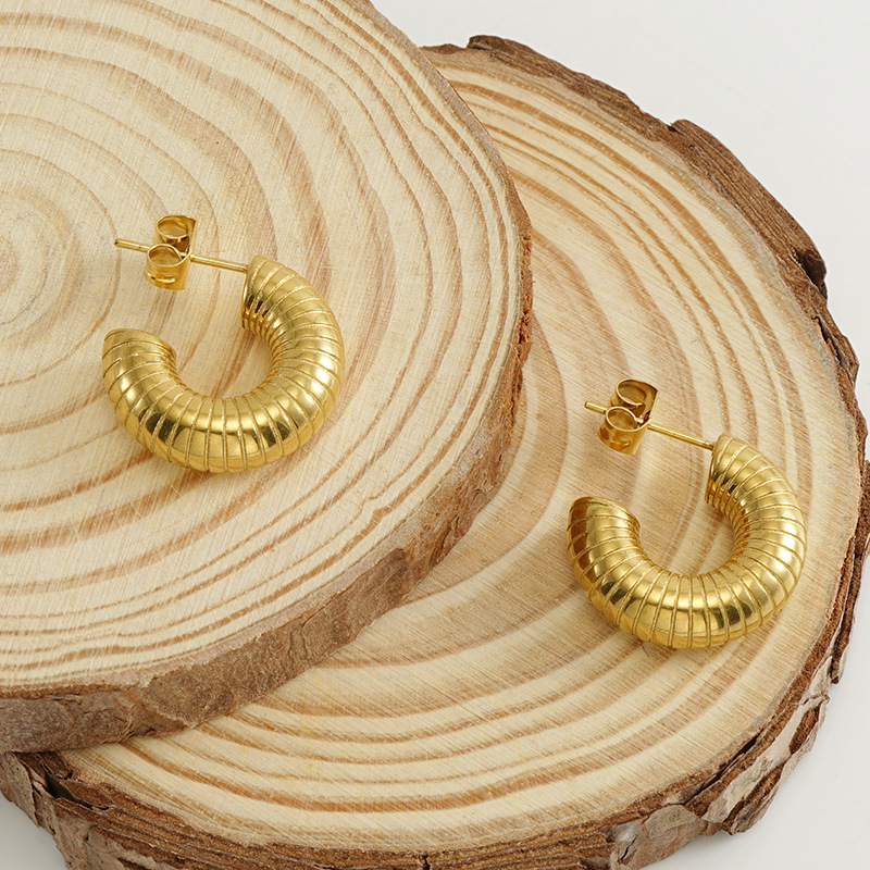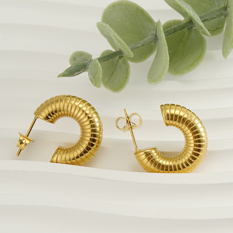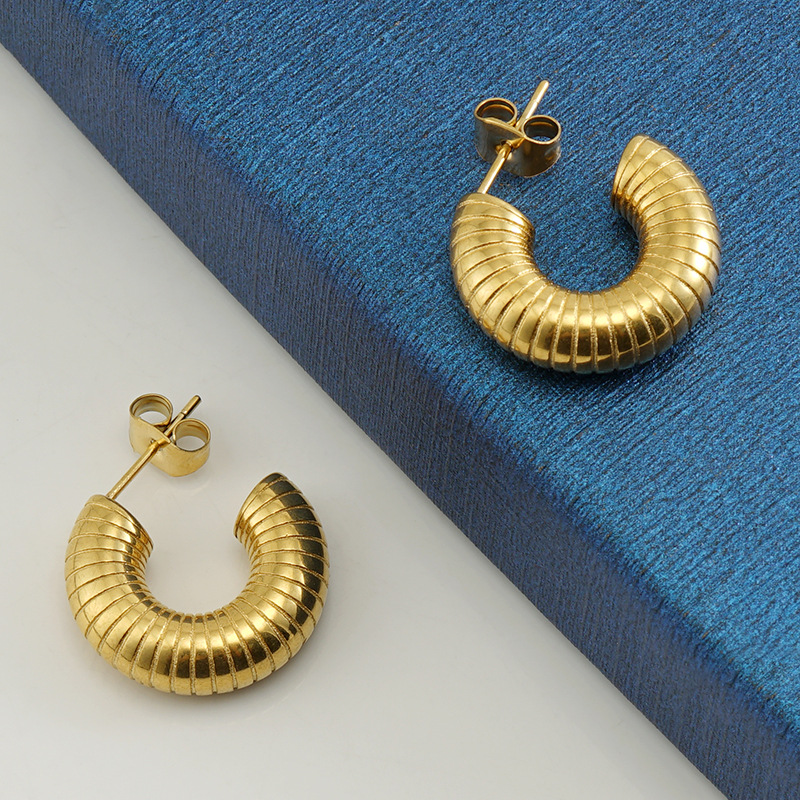 螺纹U形实心耳环,304不锈钢,18K真金 材质种类:不锈钢 | 商品编号:09562ZE799G
