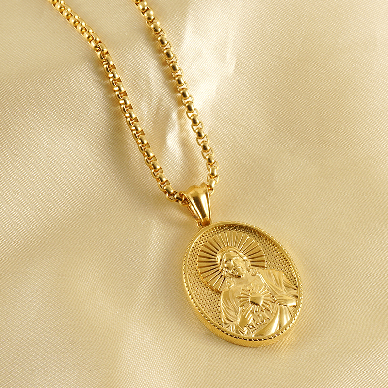 新款不锈钢项链时尚圆形3D浮雕图案吊坠钛钢18k百搭ins风男女,304不锈钢,18K真金 材质种类:不锈钢 | 商品编号:09562ZN860G