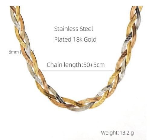 项链,304不锈钢,18K真金+玫瑰金+钢色