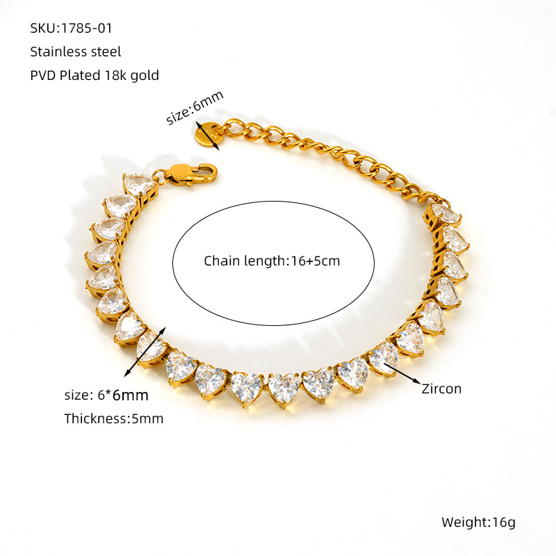 手链,304不锈钢,18K真金 锆石:白锆 材质种类:不锈钢 | 商品编号:09562ZH1785-1
