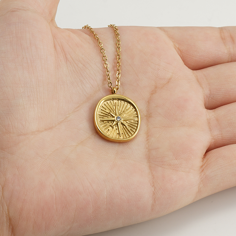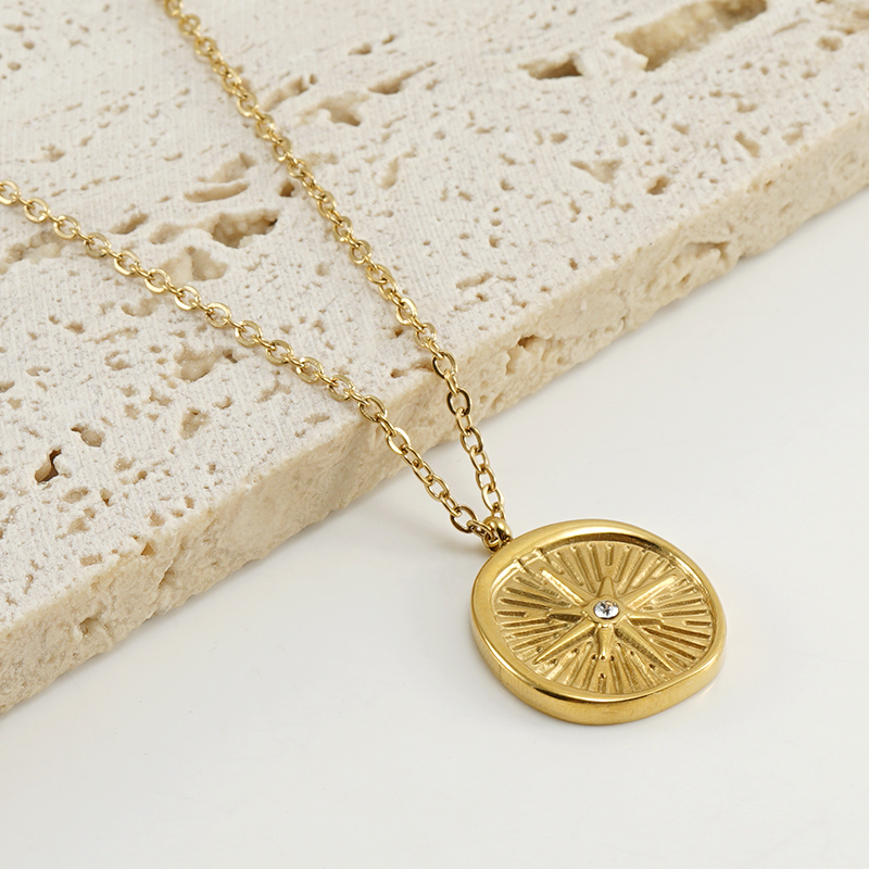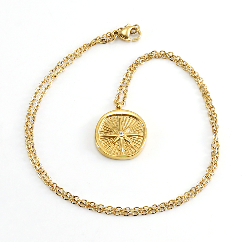 跨境不锈钢欧美时尚ins风八芒星镶钻复古项链吊坠小众冷淡轻奢风,304不锈钢,18K真金