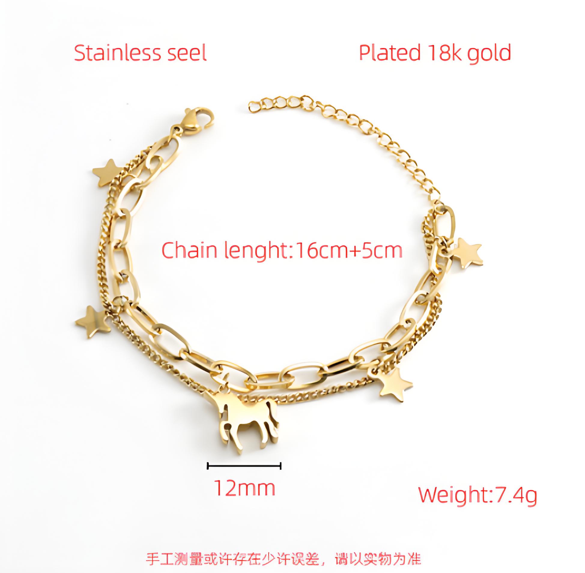 独角兽手链,304不锈钢,钢色