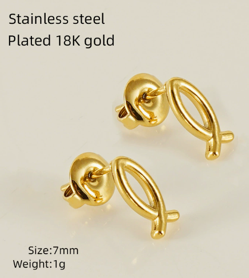 耳钉,304不锈钢,18K真金