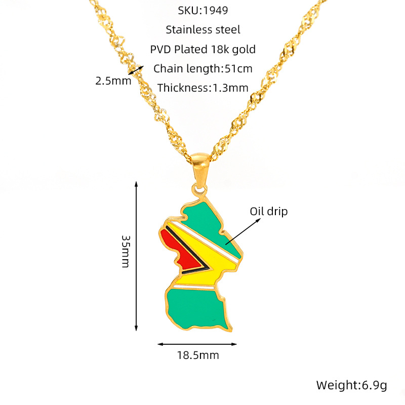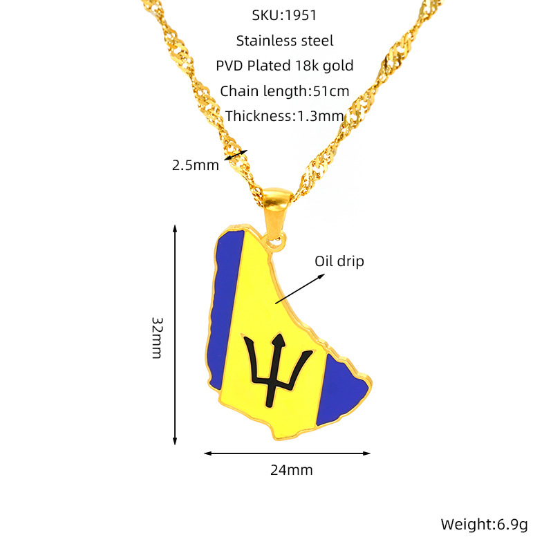 巴巴多斯岛地图项链,304不锈钢,18K真金