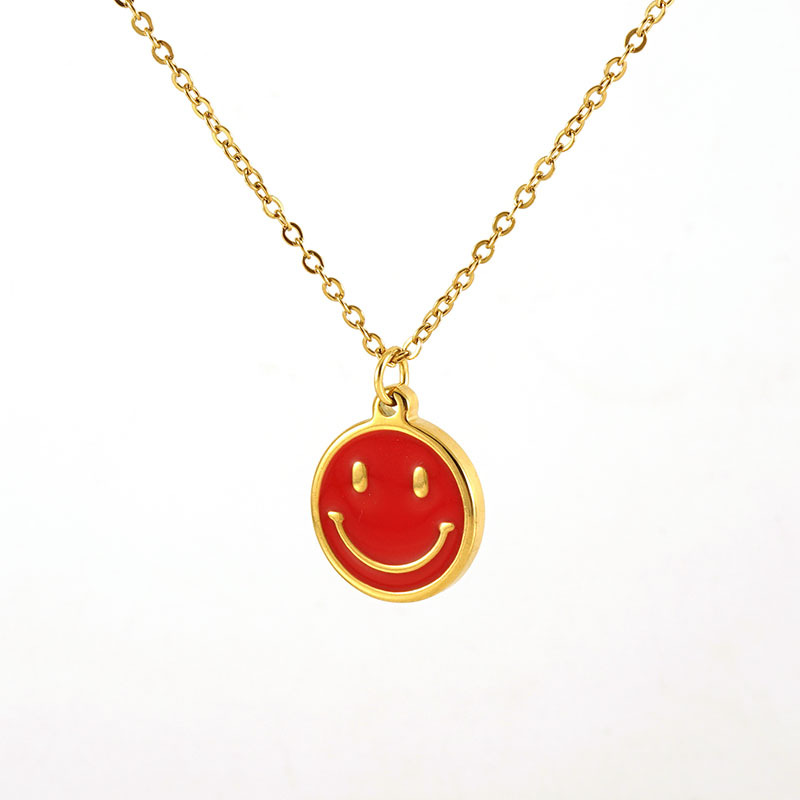 项链,304不锈钢,18K真金+粉色滴胶