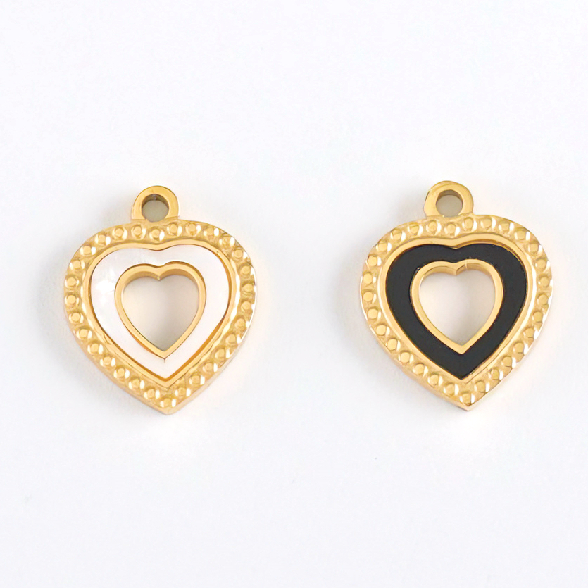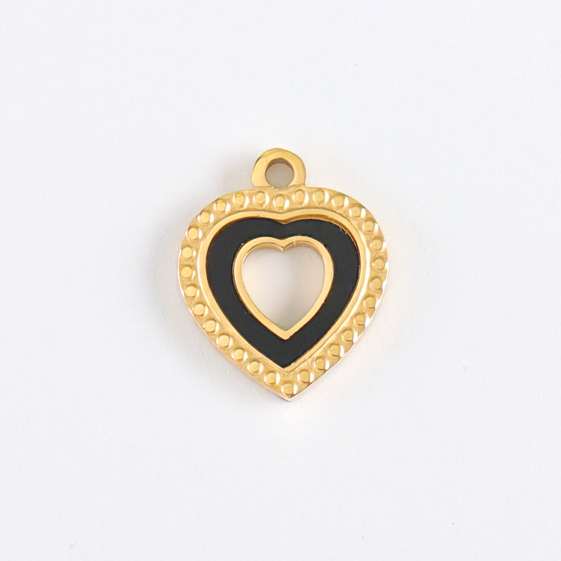 爱心吊坠,304不锈钢,18K真金+黑亚克力