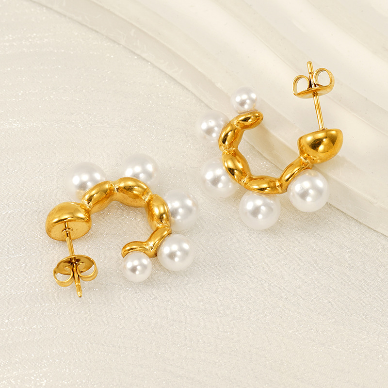 珍珠C形耳环,304不锈钢,18K真金 材质种类:不锈钢 | 商品编号:09562ZXG545