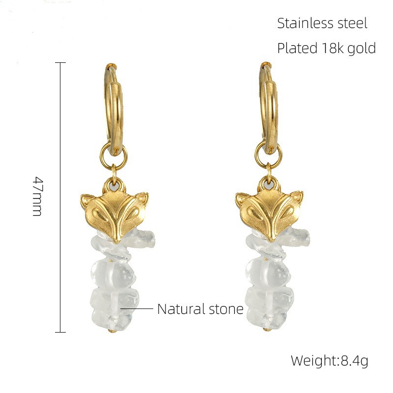 小狐狸耳坠女耳环,304不锈钢,18K真金