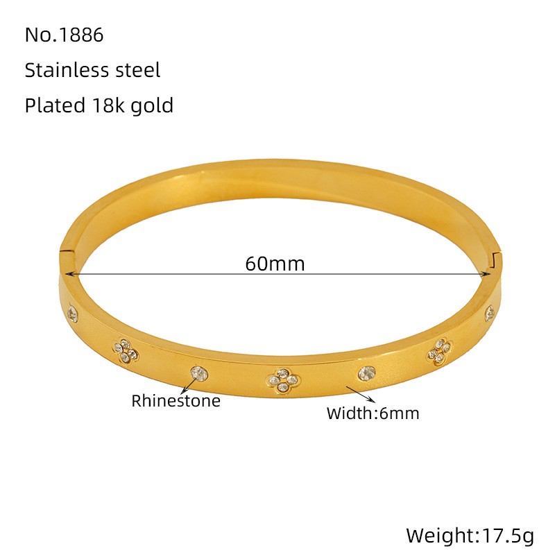 欧美跨境个性钛钢手镯女小众设计镶钻轻奢百搭女士手环不锈钢手饰,304不锈钢,18K真金