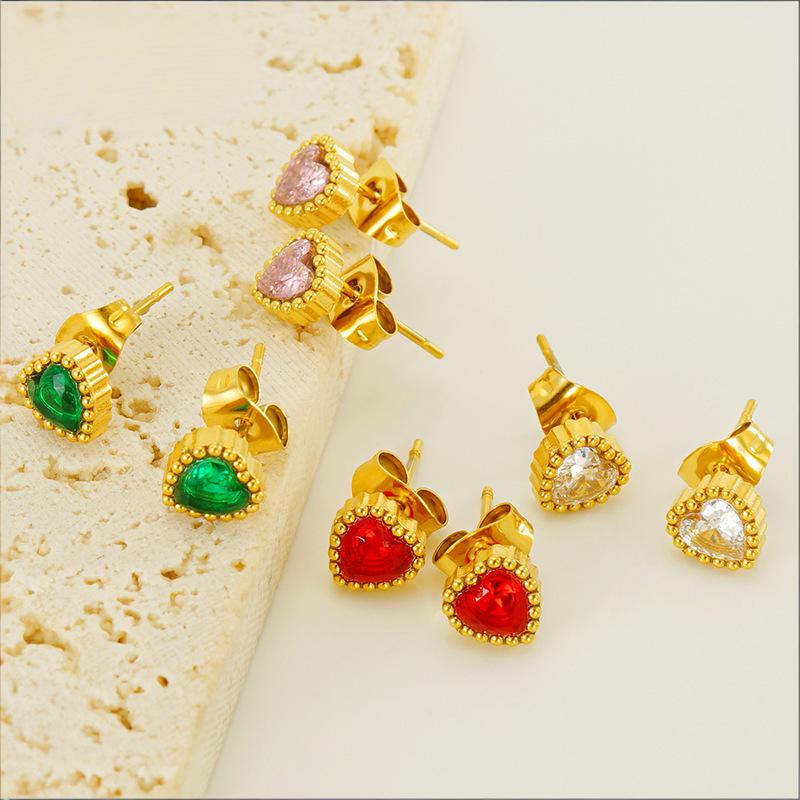 爱心小耳钉,304不锈钢,18K真金 水钻-国产石:白钻 材质种类:不锈钢 | 商品编号:09562ZE965G