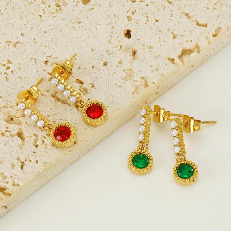 椭圆珍珠耳坠耳环,304不锈钢,18K真金 水钻-国产石:白钻