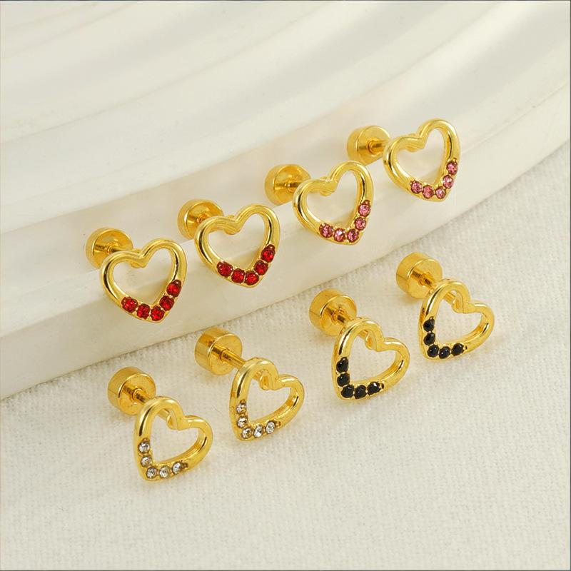 爱心耳钉,304不锈钢,18K真金 锆石:白锆 材质种类:不锈钢 | 商品编号:09562ZE1367G