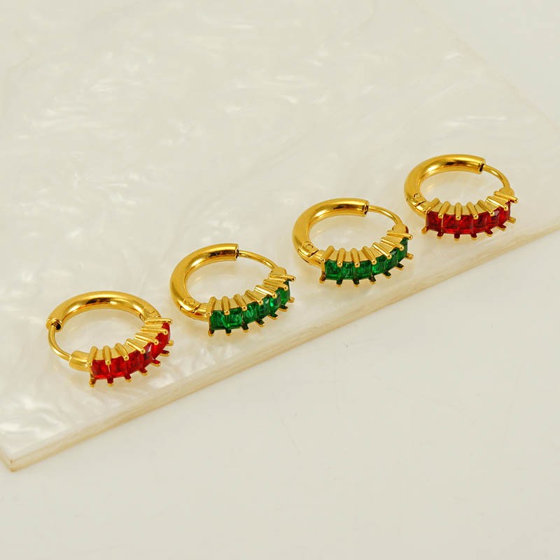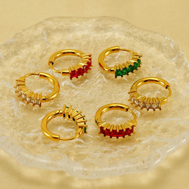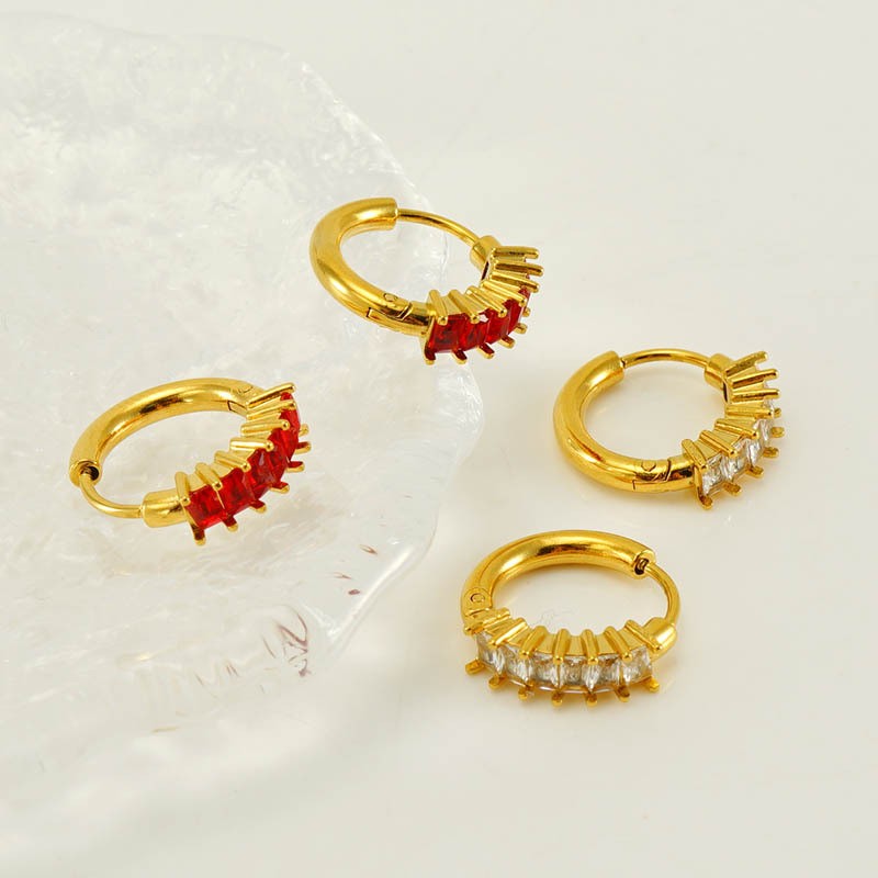 欧美INS风网红同款耳环女时尚轻奢不锈钢镀金耳扣镶嵌锆石耳圈女,304不锈钢,18K真金 白锆