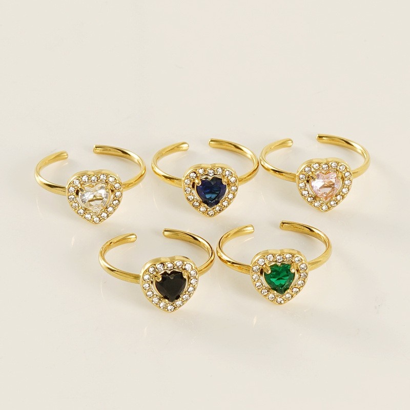 欧美INS风钛钢双层镶钻指环女18K不锈钢活口可调节戒指锆石戒指女,316不锈钢,18K真金 黑锆 材质种类:不锈钢 | 商品编号:09562ZR586G
