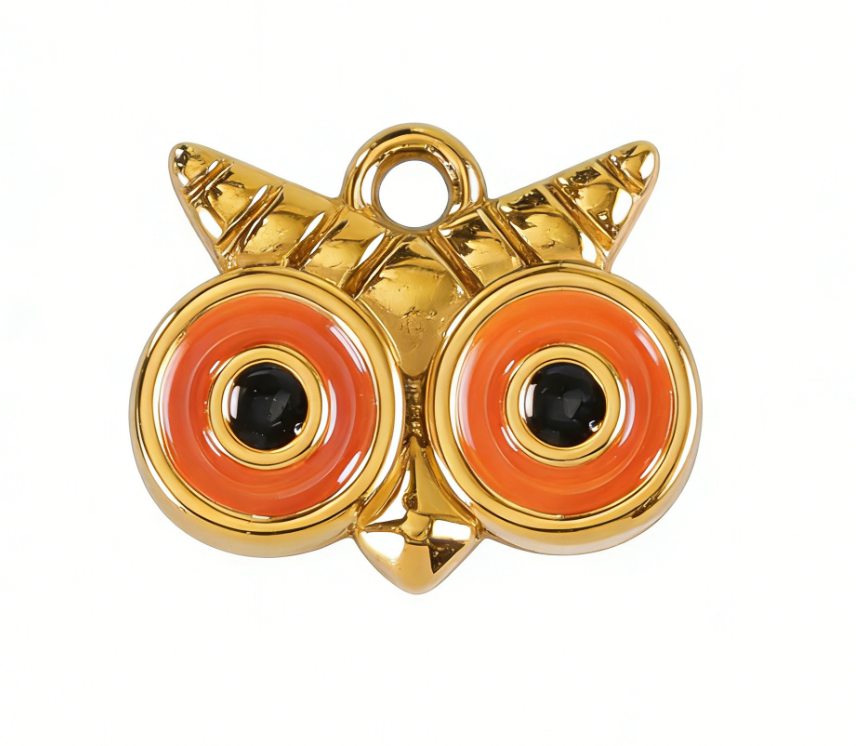 猫头鹰吊坠,304不锈钢,18K真金+橙色胶