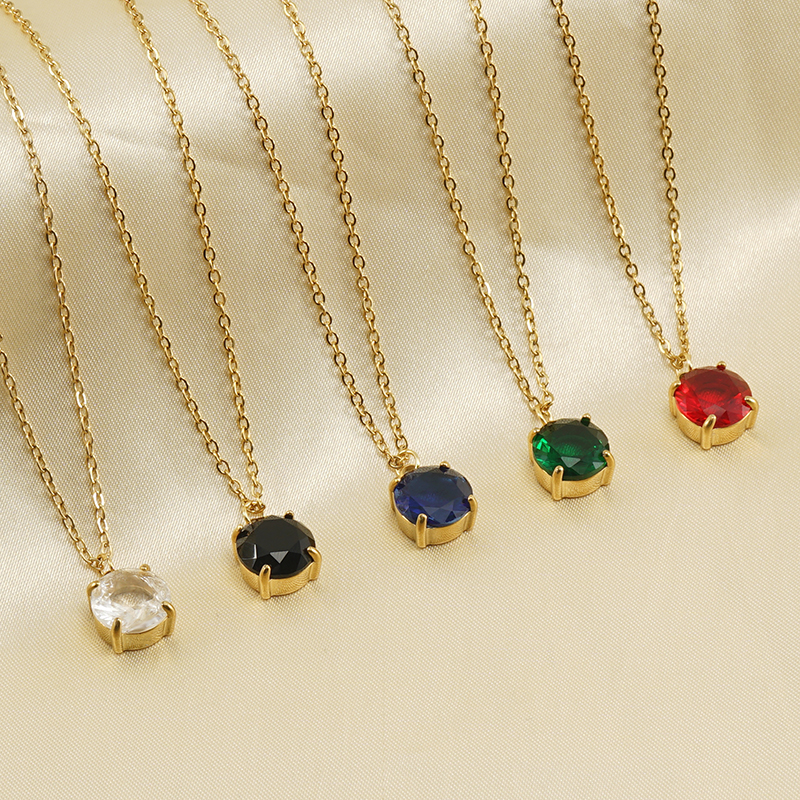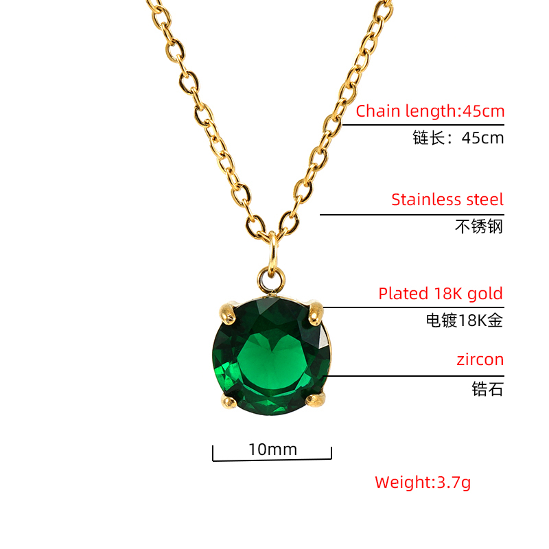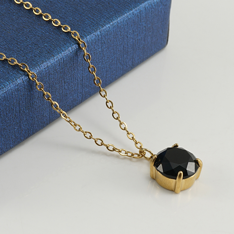 跨境欧美钛时尚多色锆石吊坠锁骨链18K金色不锈钢正方形ins项链女,304不锈钢,18K真金 黑锆