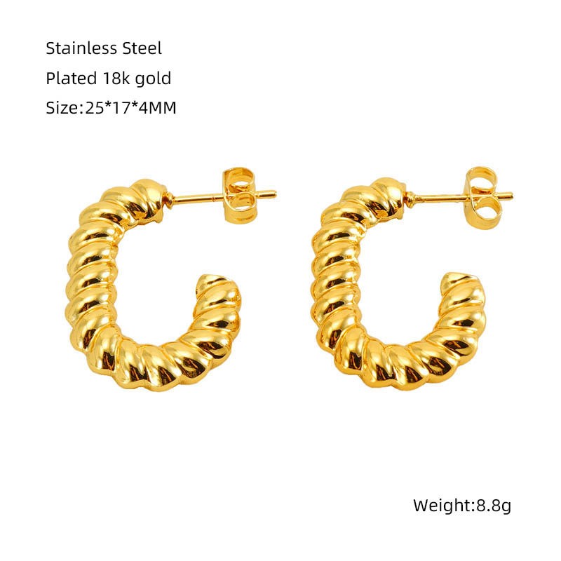 跨境欧美INS风扭曲麻花不锈钢耳环耳饰小众设计感钛钢螺旋纹耳钉女不掉色,304不锈钢,18K真金 材质种类:不锈钢 | 商品编号:09562ZE1228G