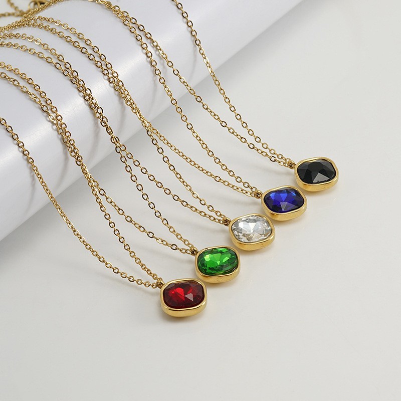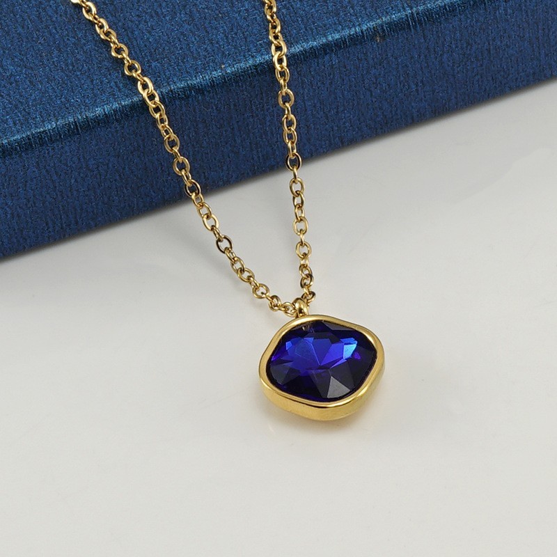 跨境亚马逊时尚几何钛钢项链女欧美18K不锈钢不规则锆石吊坠项链,304不锈钢,18K真金 白锆 材质种类:不锈钢 | 商品编号:09562ZN225G
