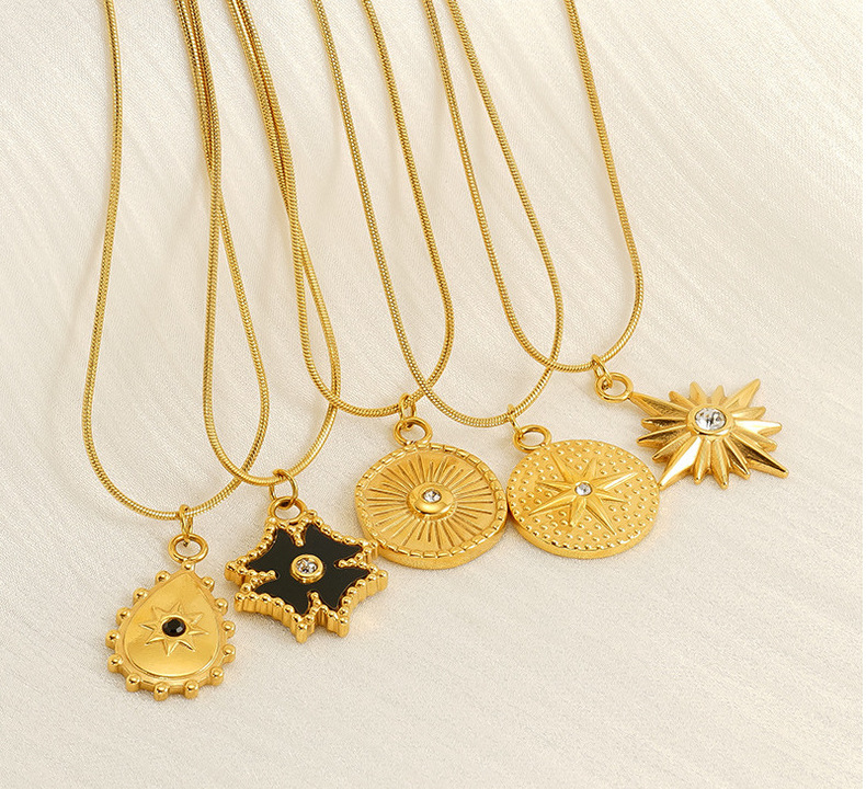 圆饼六芒星,304不锈钢,18K真金 材质种类:不锈钢 | 商品编号:09562ZG1612 尺寸: 主链45cmx吊坠长19mmx吊坠宽15mm