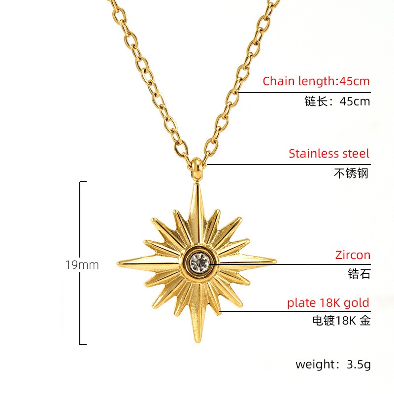 电镀18K金不锈钢八芒星镶嵌锆石锆石项链,304不锈钢,18K真金 材质种类:不锈钢 | 商品编号:09562ZN224G