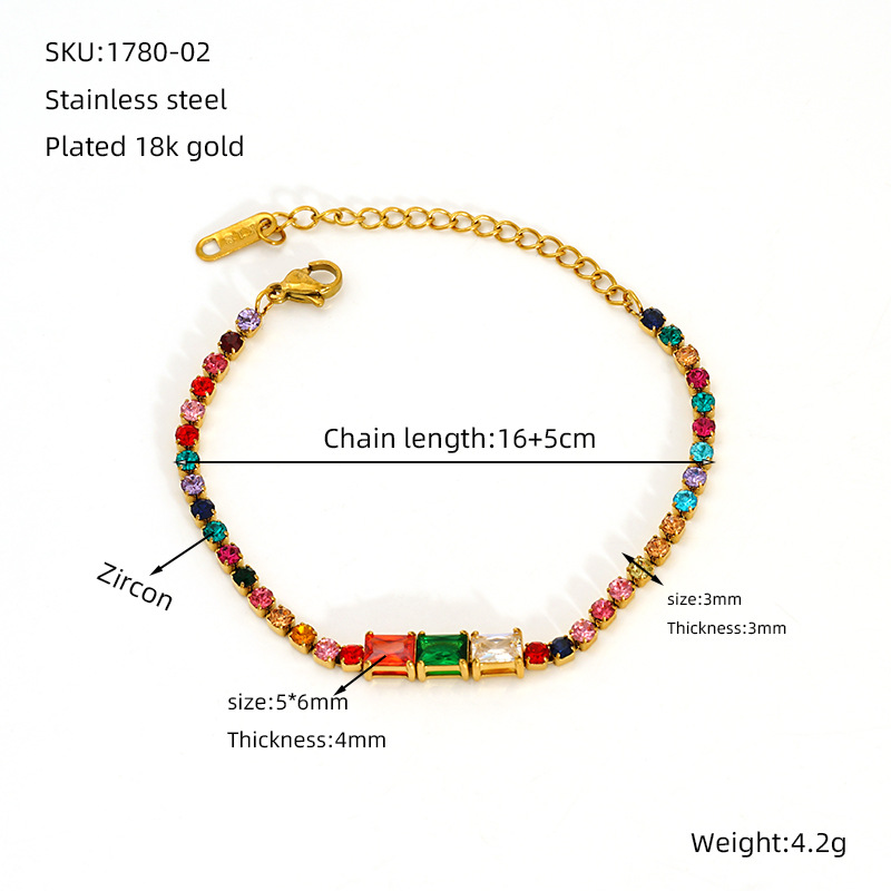 主链16cmx尾链5cmx链宽3mmx长方形锆石长6mmx长方形锆石宽5mm