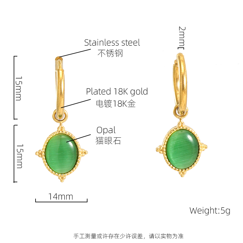 跨境欧美不锈钢耳圈女时尚简约18K金钛钢几何形猫眼石耳环女,304不锈钢,18K真金 材质种类:不锈钢 | 商品编号:09562ZE471G