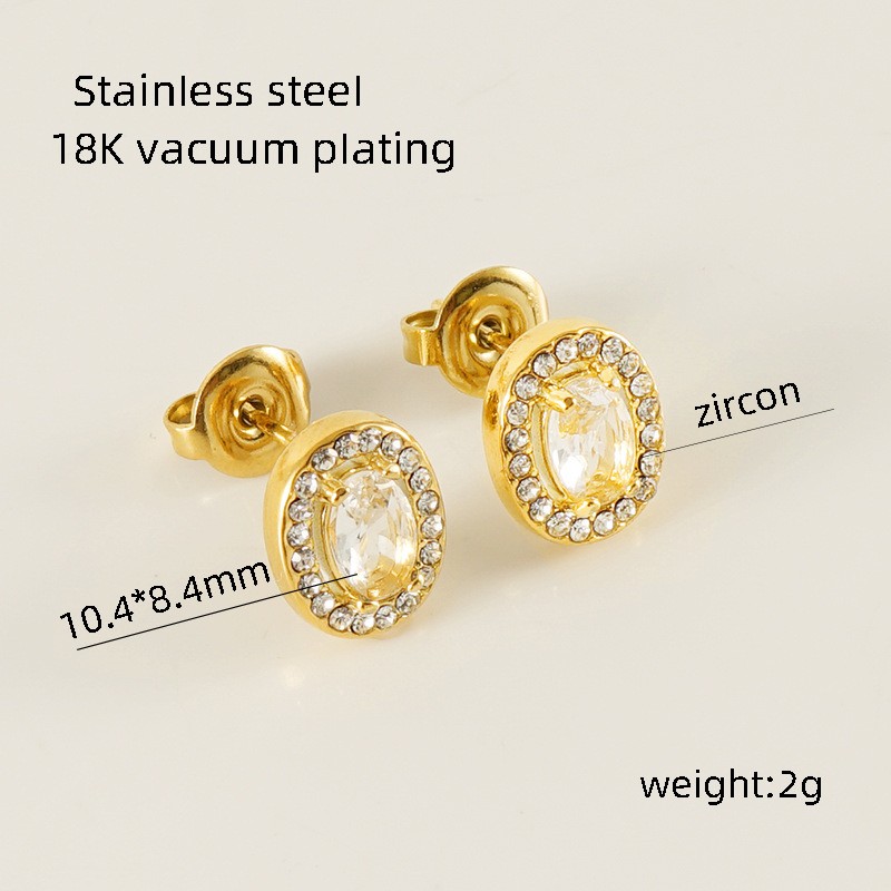 耳钉,304不锈钢,18K真金+粉锆
