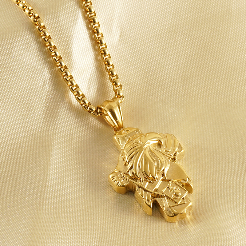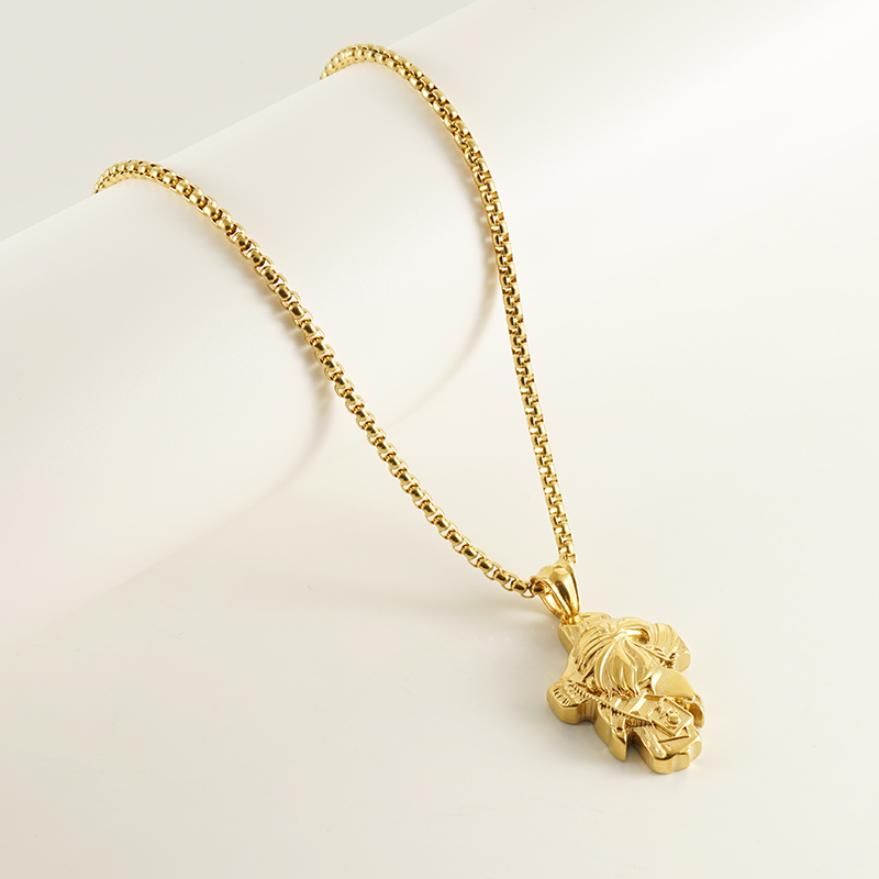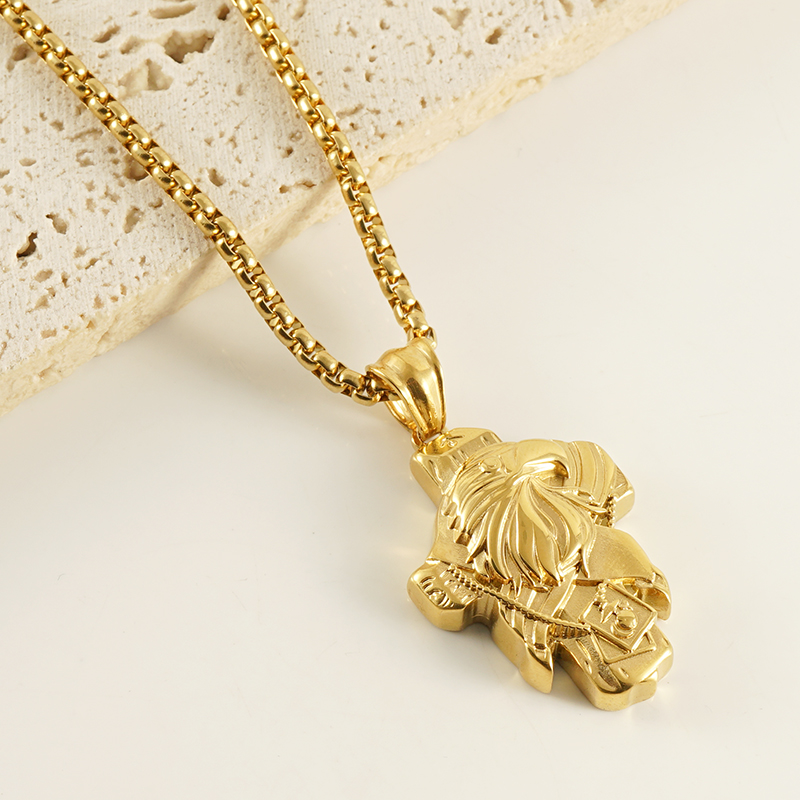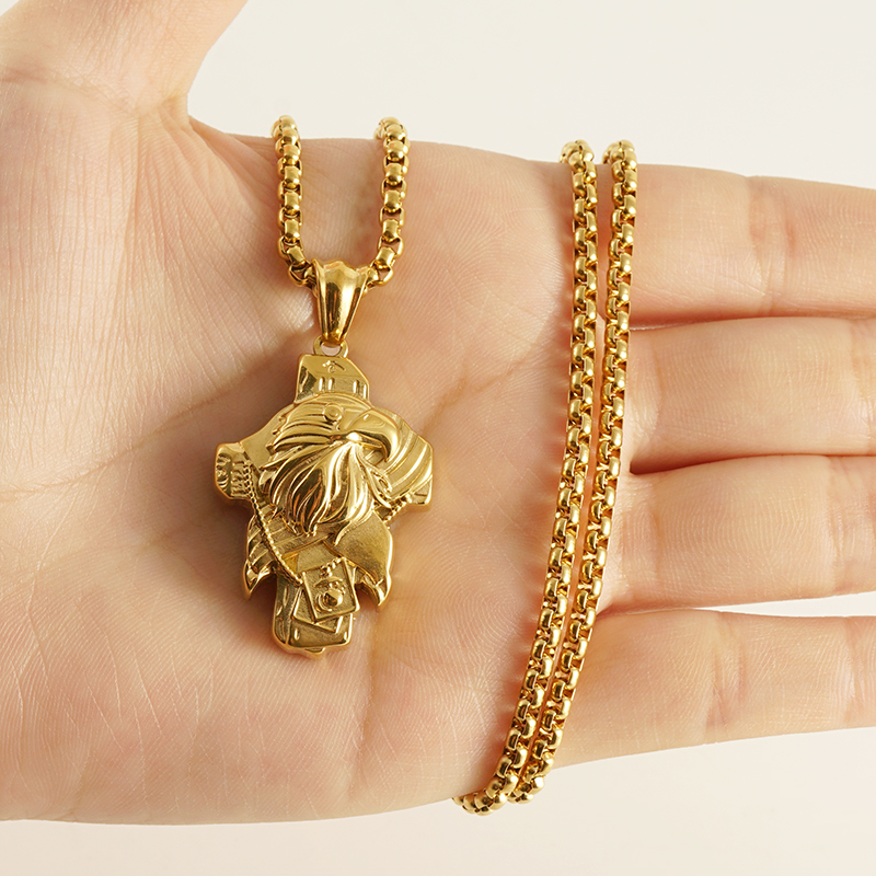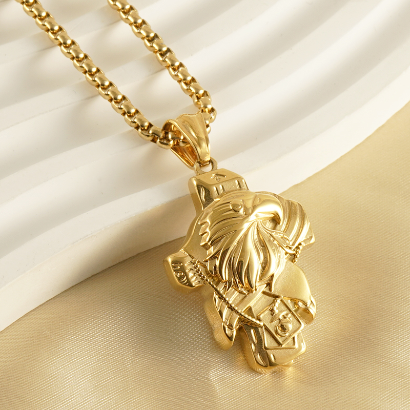 跨境不锈钢霸气男款“沙漠之鹰”吊坠18K欧美风钛钢嘻哈项链男,304不锈钢,18K真金