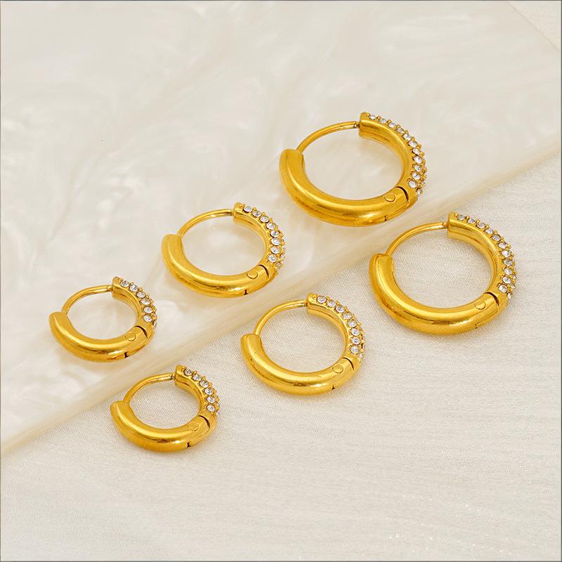 素圈带钻耳环,304不锈钢,18K真金 长度:12mm 面宽:2.5mm 材质种类:不锈钢 | 商品编号:09562ZE1742G