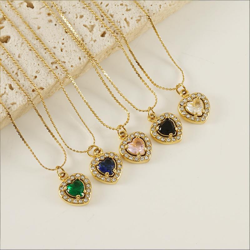 爱心项链,304不锈钢,18K真金+白钻国产石