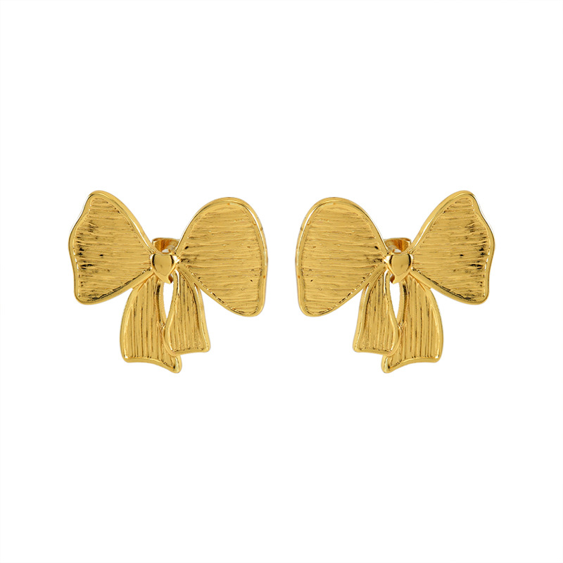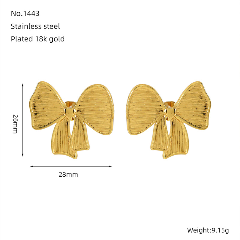 蝴蝶结耳钉,304不锈钢,18K真金