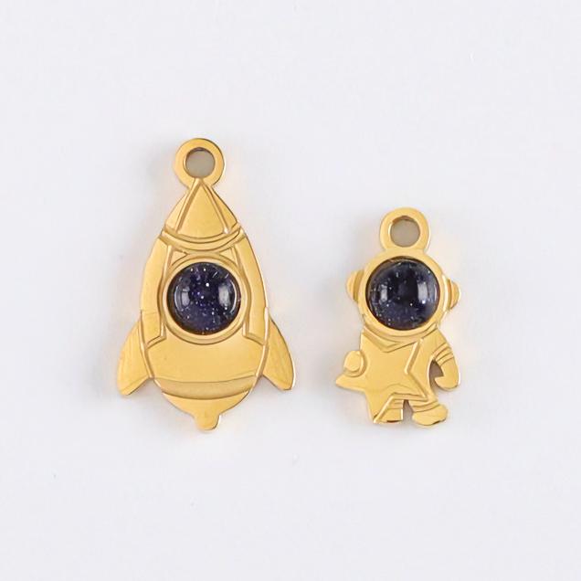 宇航员吊坠,304不锈钢,18K真金 宇航员