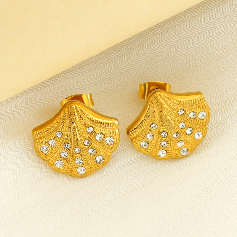 贝壳镶钻耳钉,304不锈钢,18K真金 材质种类:不锈钢 | 商品编号:09562ZG328