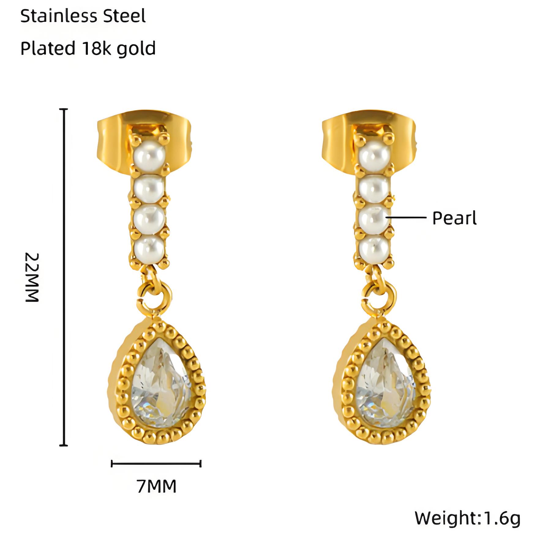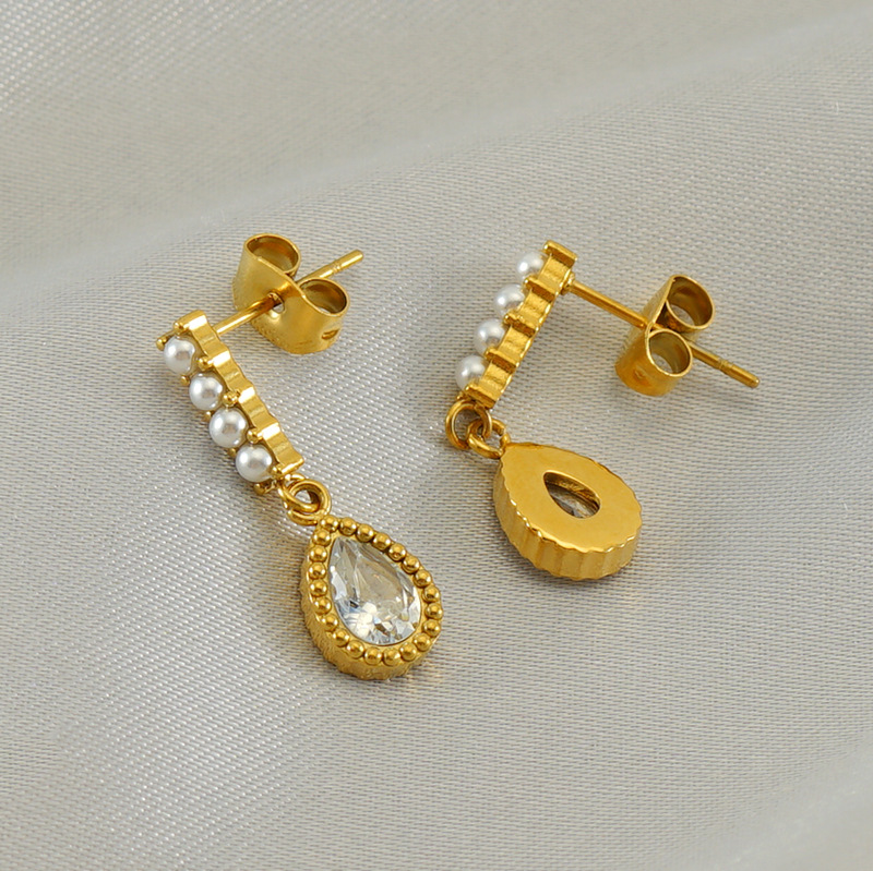 耳环,304不锈钢,18K真金+白钻国产石