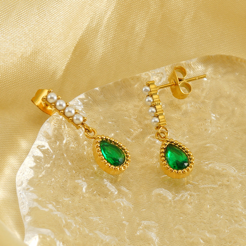 水滴耳环,304不锈钢,18K真金 水钻-国产石:白钻 材质种类:不锈钢 | 商品编号:09562ZX1222