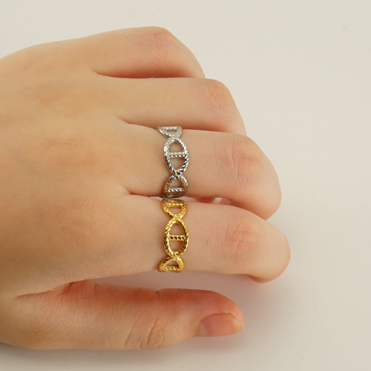批花纹18K金不锈钢戒指,304不锈钢,钢色