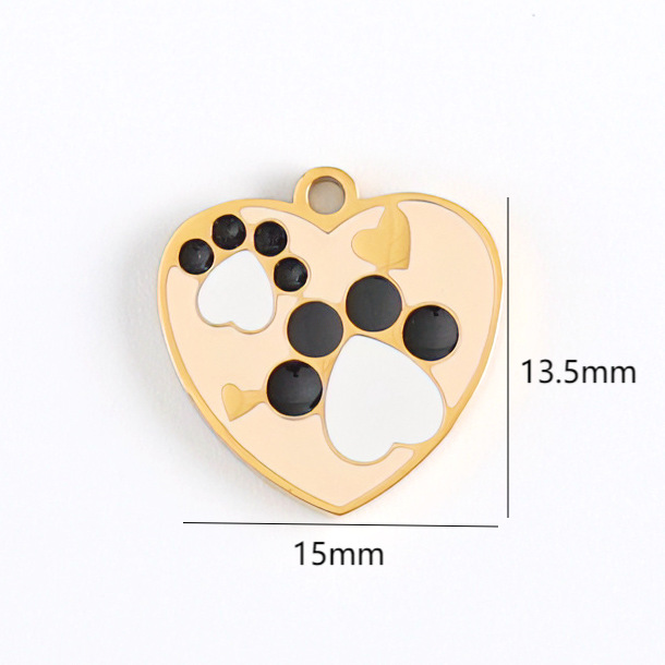 狗爪爱心吊坠,304不锈钢,18K真金