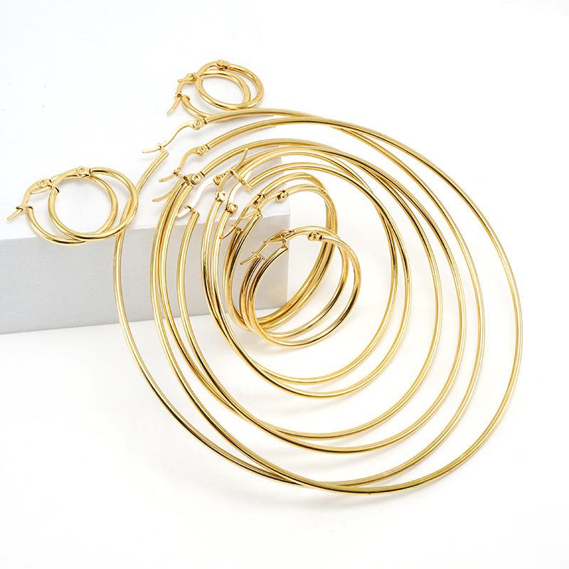 圆形耳环,304不锈钢,18K真金 外径:15mm 材质种类:不锈钢 | 商品编号:09562ZE182G