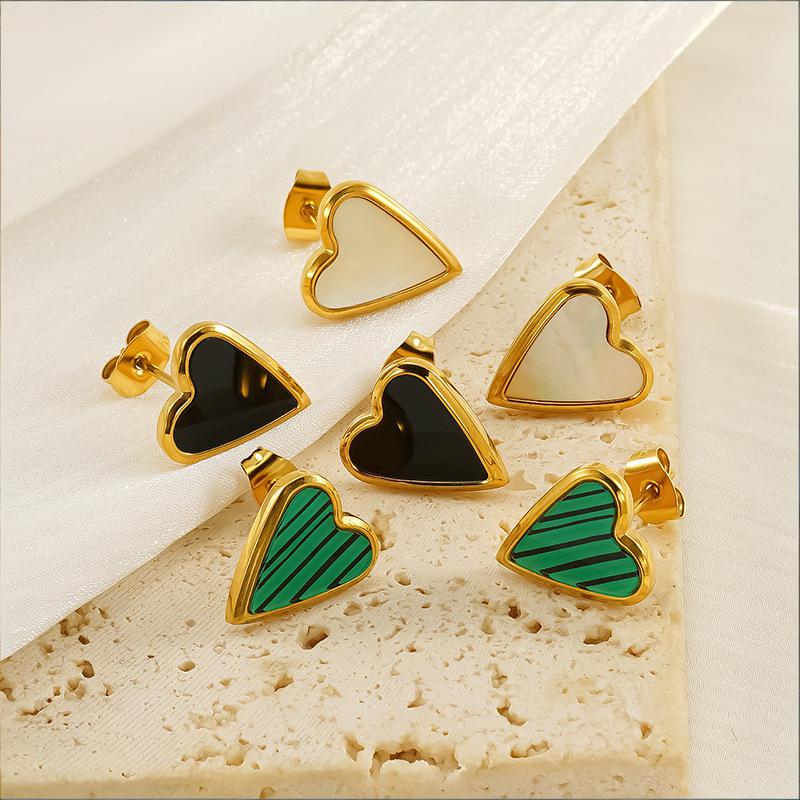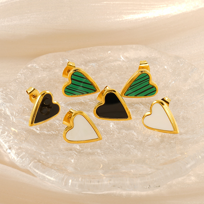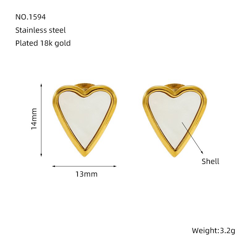 爱心耳钉,304不锈钢,18K真金 贝壳:白贝 材质种类:不锈钢 | 商品编号:09562ZE1594G
