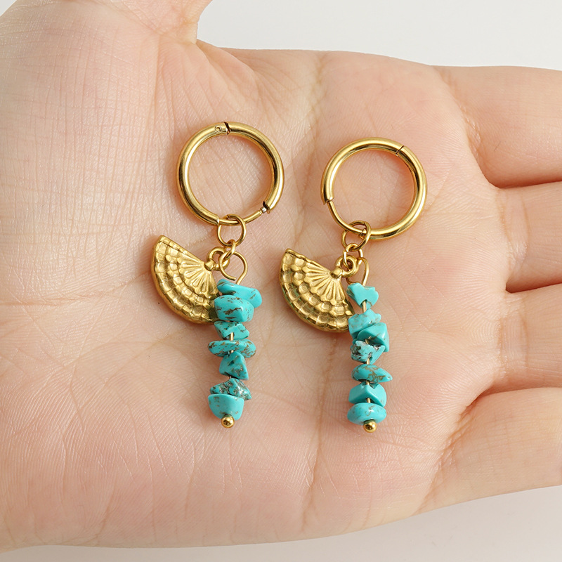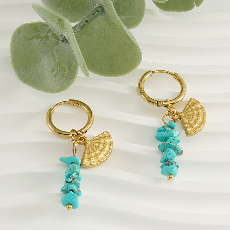 扇形蓝松石耳坠耳环,304不锈钢,18K真金