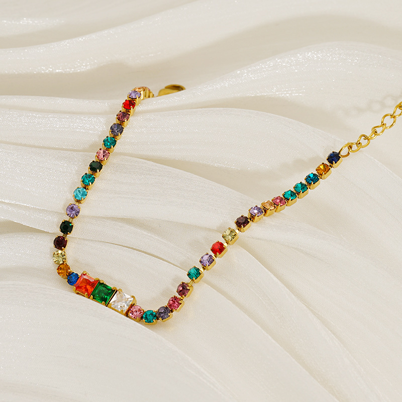 手链,304不锈钢,18K真金 锆石:白锆