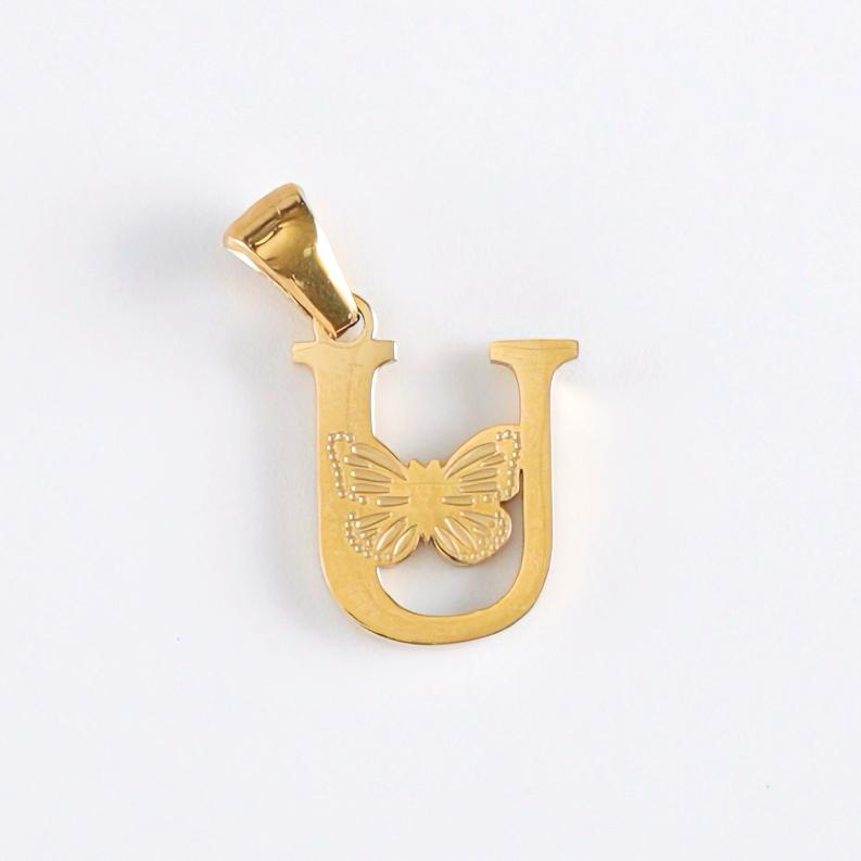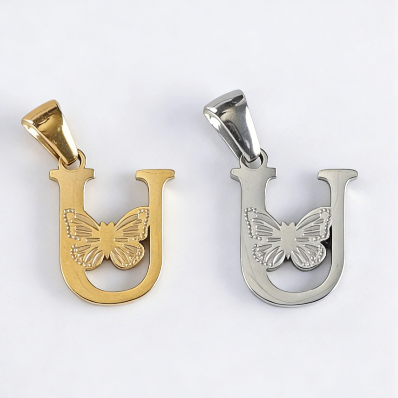 字母U吊坠,304不锈钢,钢色