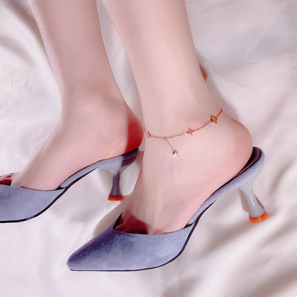 别针两世欢脚链,304不锈钢,18K真金