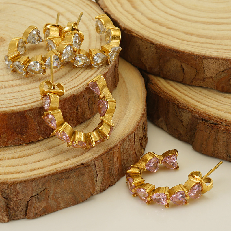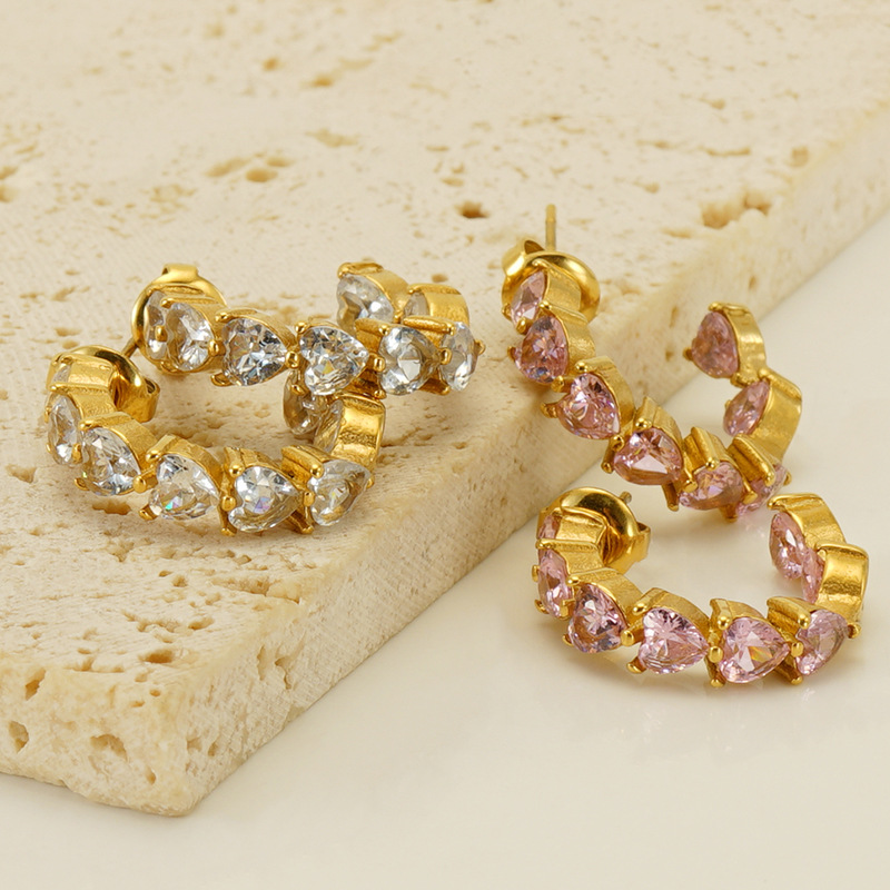 锆石耳环,304不锈钢,18K真金 锆石:白锆 材质种类:不锈钢 | 商品编号:09562ZXG-919