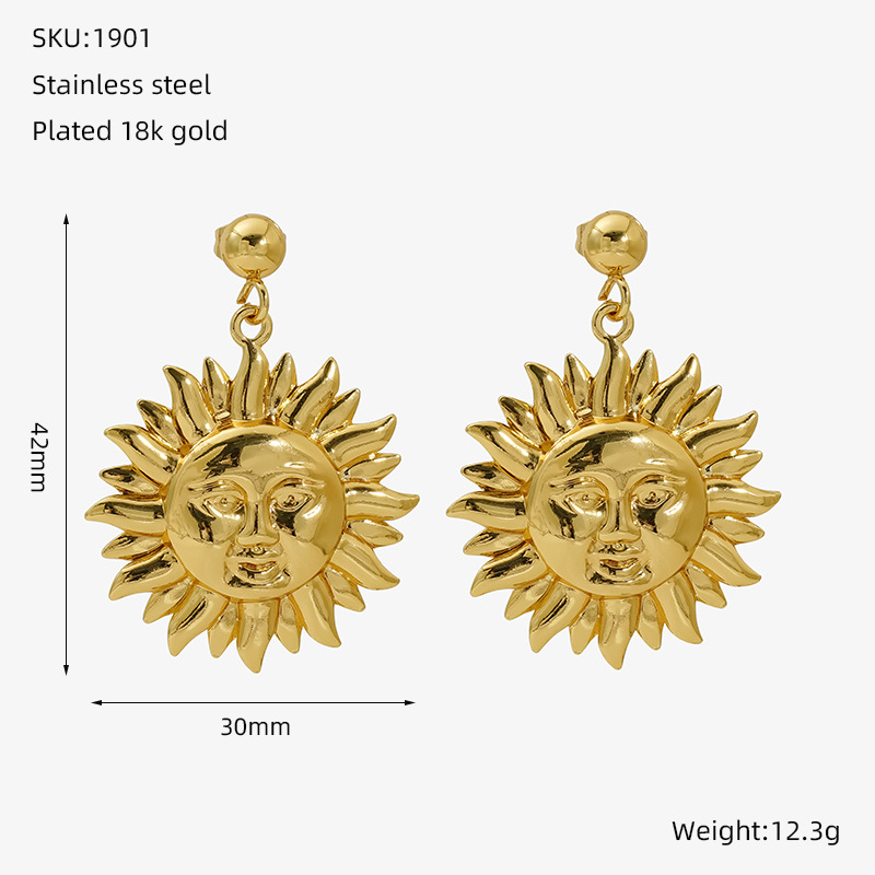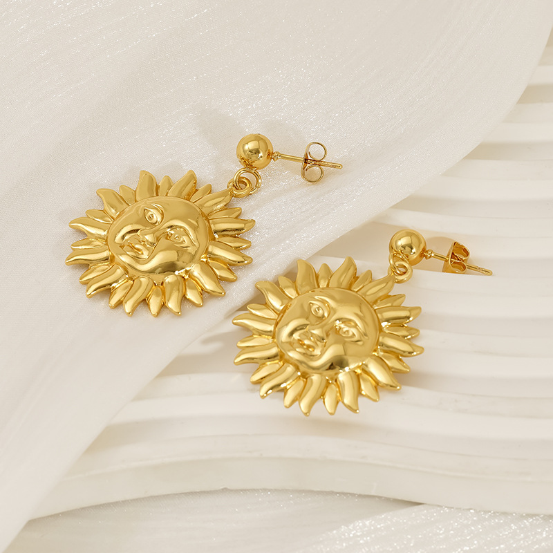 笑脸太阳花耳坠耳环,304不锈钢,18K真金 材质种类:不锈钢 | 商品编号:09562ZE1901