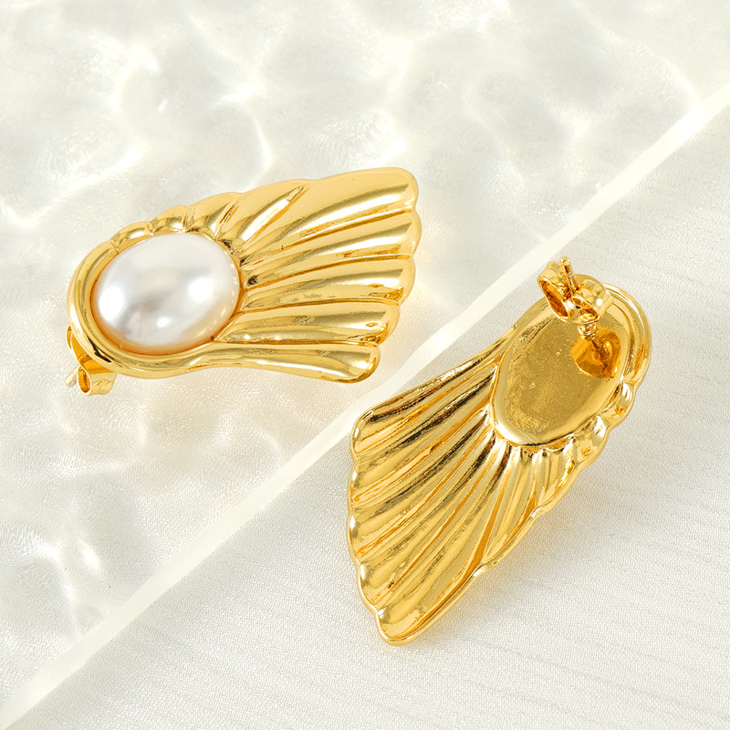 扇形珍珠耳钉,304不锈钢,18K真金